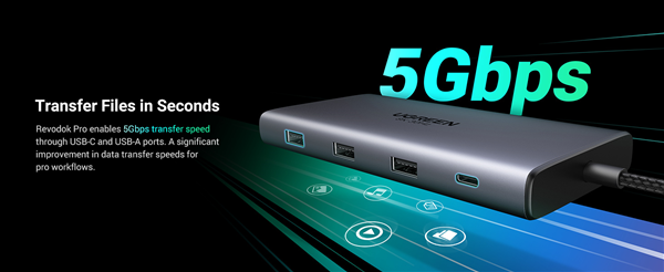 Thông số kỹ thuật: Docking Station 10 in 1 Type-C Thunderbolt Revodok Pro 210 ra HDMI, USB, LAN, SD/TF, PD Ugreen 15534 cao cấp